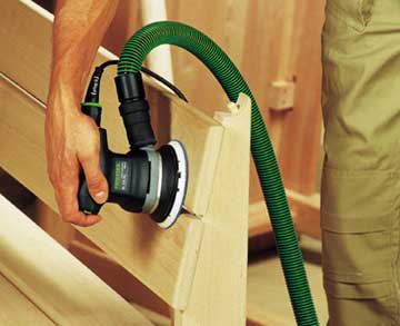 Standard hook-and-loop sanding paper and sanding felt self adheres to the unit's pad. A large central hole in the sanding disk uses air powered from the sander to blow dust into the other dust collection holes, which gives much longer life to the abrasive disk. |